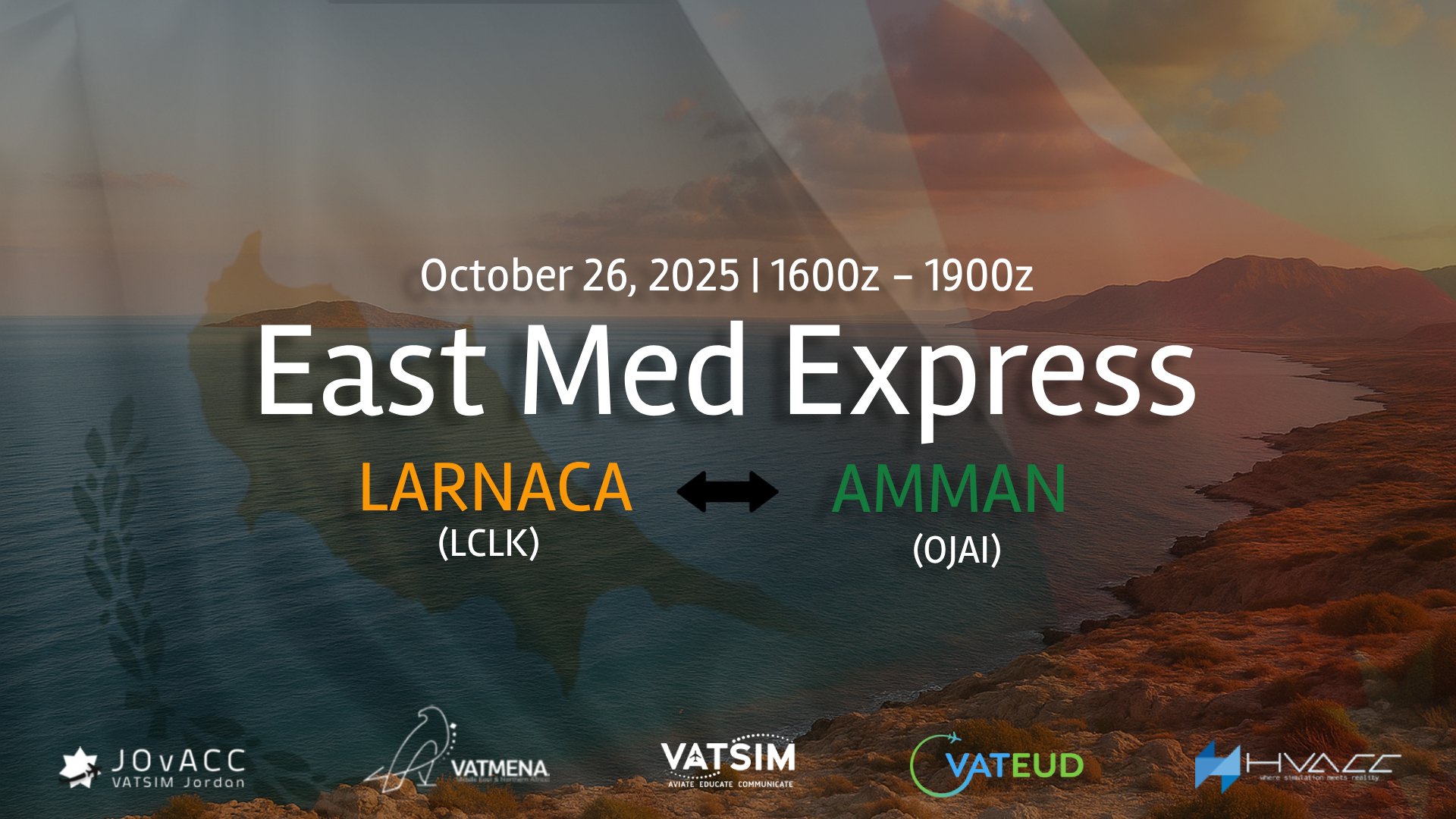 Get ready to connect the Mediterranean with the Middle East in East Med Express, a cross-regional event brought to you by JoVACC and HvACC, in collaboration with VATMENA and VATEUD!